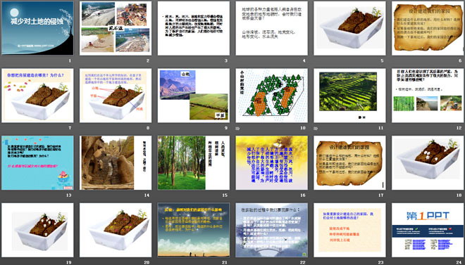 关键词:地球表面及其变化教学课件,减少对土地的侵蚀教学课件,教科版五年级上册科学PPT课件下载,五年级科学幻灯片课件下载,地球表面及其变化PPT课件下载,减少对土地的侵蚀PPT课件下载,.PPT格式;
