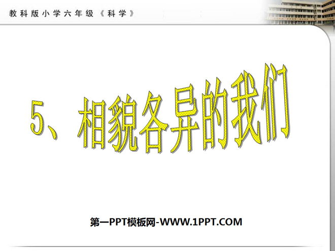 关键词:生物的多样性教学课件,相貌各异的我们教学课件,教科版六年级上册科学PPT课件下载,六年级科学幻灯片课件下载,生物的多样性PPT课件下载,相貌各异的我们PPT课件下载,.PPT格式;
