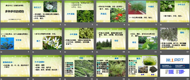 关键词:生物的多样性教学课件,多种多样的植物教学课件,教科版六年级上册科学PPT课件下载,六年级科学幻灯片课件下载,生物的多样性PPT课件下载,多种多样的植物PPT课件下载,.PPT格式;