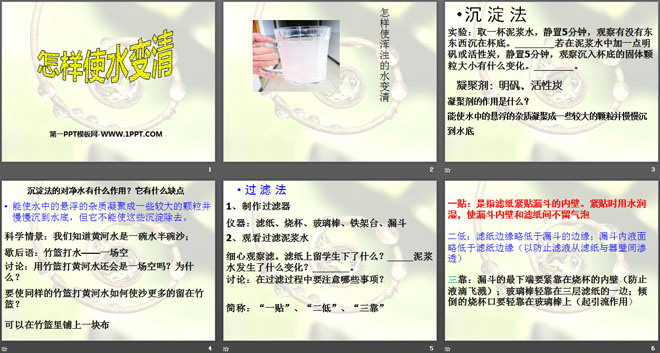 关键词:饮用水教学课件,怎样使水变清教学课件,鄂教版三年级上册科学PPT课件下载,三年级科学幻灯片课件下载,饮用水PPT课件下载,怎样使水变清PPT课件下载,.PPT格式;