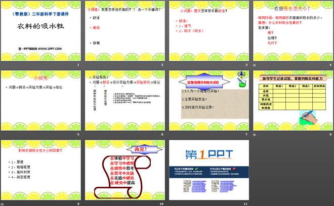 关键词:衣料的吸水性教学课件,鄂教版三年级下册科学PPT课件下载,三年级科学幻灯片课件下载,衣料的吸水性PPT课件下载,.PPT格式;