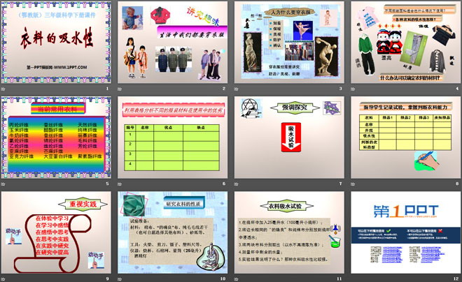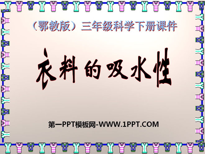 关键词:衣料的吸水性教学课件,鄂教版三年级下册科学PPT课件下载,三年级科学幻灯片课件下载,衣料的吸水性PPT课件下载,.PPT格式;