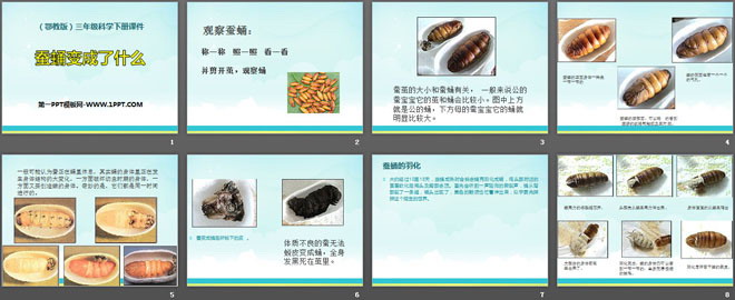 关键词:蚕蛹变成了什么教学课件,鄂教版三年级下册科学PPT课件下载,三年级科学幻灯片课件下载,蚕蛹变成了什么PPT课件下载,.PPT格式;