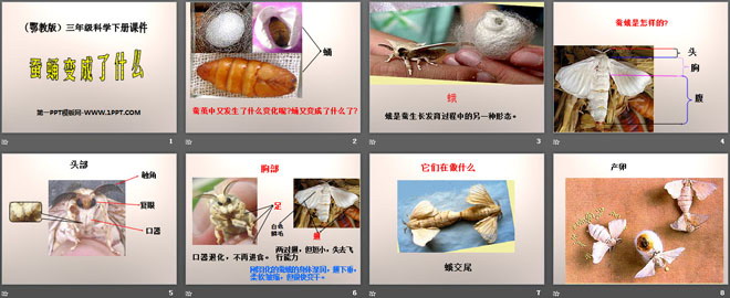 关键词:蚕蛹变成了什么教学课件,鄂教版三年级下册科学PPT课件下载,三年级科学幻灯片课件下载,蚕蛹变成了什么PPT课件下载,.PPT格式;