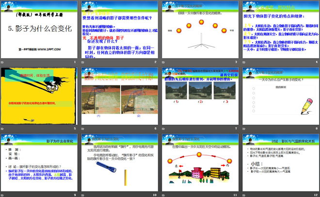 关键词:旗杆和影子教学课件,影子为什么会变化教学课件,鄂教版四年级上册科学PPT课件下载,四年级科学幻灯片课件下载,旗杆和影子PPT课件下载,影子为什么会变化PPT课件下载,.PPT格式;