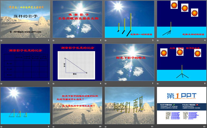 关键词:旗杆和影子教学课件,旗杆的影子教学课件,鄂教版四年级上册科学PPT课件下载,四年级科学幻灯片课件下载,旗杆和影子PPT课件下载,旗杆的影子PPT课件下载,.PPT格式;