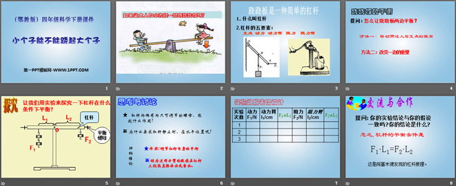 关键词:小个子能不能跷起大个子教学课件,鄂教版四年级下册科学PPT课件下载,四年级科学幻灯片课件下载,小个子能不能跷起大个子PPT课件下载,.PPT格式;