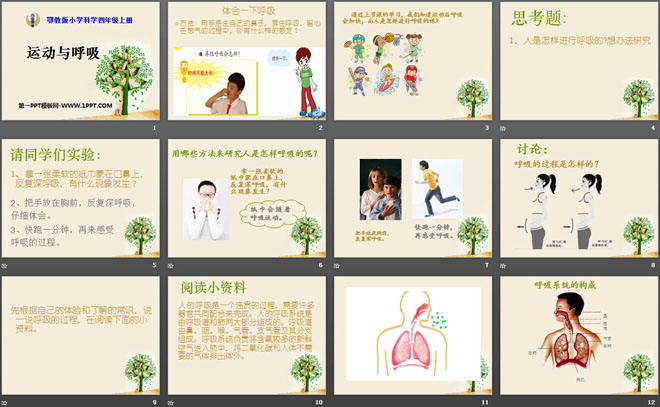 关键词:我们在校园里运动教学课件,运动与呼吸教学课件,鄂教版四年级上册科学PPT课件下载,四年级科学幻灯片课件下载,我们在校园里运动PPT课件下载,运动与呼吸PPT课件下载,.PPT格式;