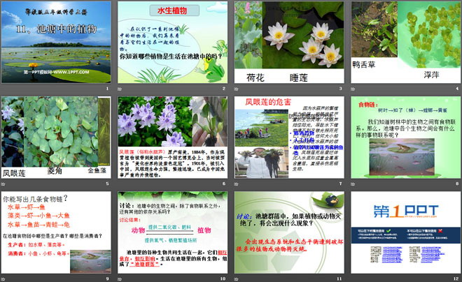 关键词:池塘群落教学课件,池塘中的植物教学课件,鄂教版五年级上册科学PPT课件下载,五年级科学幻灯片课件下载,池塘群落PPT课件下载,池塘中的植物PPT课件下载,.PPT格式;