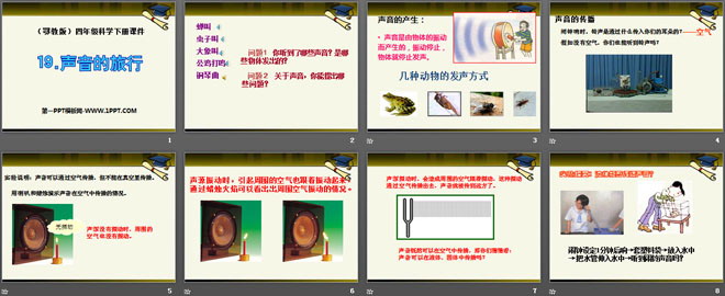 关键词:声音的旅行教学课件,鄂教版四年级下册科学PPT课件下载,四年级科学幻灯片课件下载,声音的旅行PPT课件下载,.PPT格式;