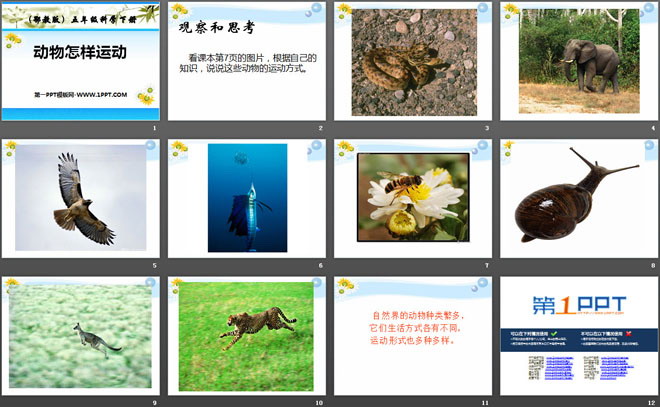 关键词:动物怎样运动教学课件,鄂教版五年级下册科学PPT课件下载,五年级科学幻灯片课件下载,动物怎样运动PPT课件下载,.PPT格式;