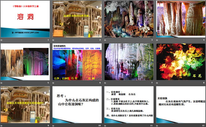 关键词:地面形态的变化教学课件,溶洞教学课件,鄂教版六年级上册科学PPT课件下载,六年级科学幻灯片课件下载,地面形态的变化PPT课件下载,溶洞PPT课件下载,.PPT格式;