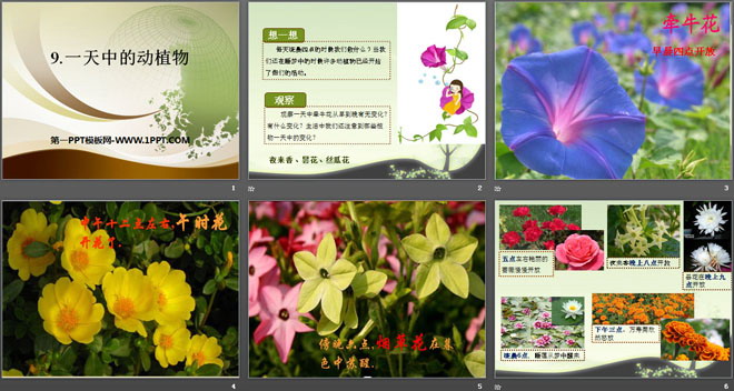 关键词:地球上的一天教学课件,一天中的动植物教学课件,鄂教版六年级上册科学PPT课件下载,六年级科学幻灯片课件下载,地球上的一天PPT课件下载,一天中的动植物PPT课件下载,.PPT格式;