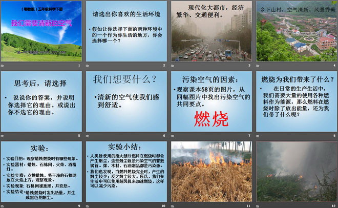 关键词:我们需要清新的空气教学课件,鄂教版五年级下册科学PPT课件下载,五年级科学幻灯片课件下载,我们需要清新的空气PPT课件下载,.PPT格式;