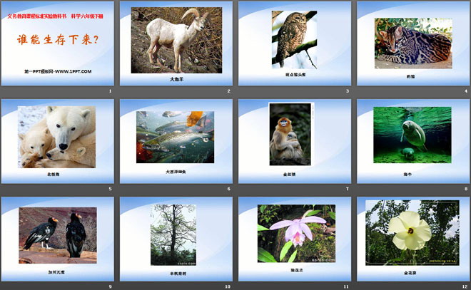 关键词:谁能生存下来教学课件,鄂教版六年级下册科学PPT课件下载,六年级科学幻灯片课件下载,谁能生存下来PPT课件下载,.PPT格式;