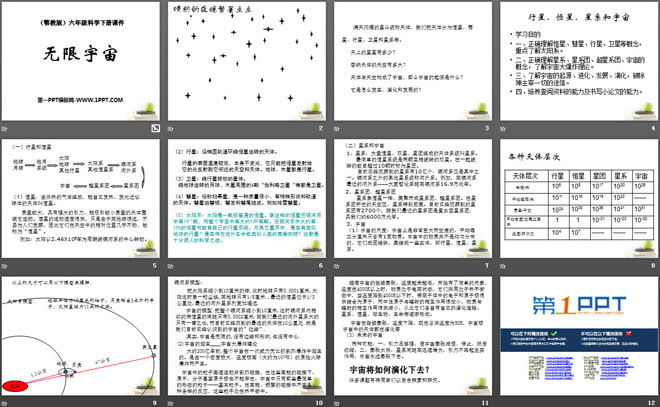 关键词:无限宇宙教学课件,鄂教版六年级下册科学PPT课件下载,六年级科学幻灯片课件下载,无限宇宙PPT课件下载,.PPT格式;