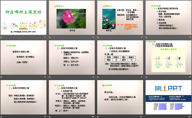 关键词:植物生活的土地教学课件,种在哪种土壤里好教学课件,人教版三年级下册科学PPT课件下载,三年级科学幻灯片课件下载,植物生活的土地PPT课件下载,种在哪种土壤里好PPT课件下载,.PPT格式;