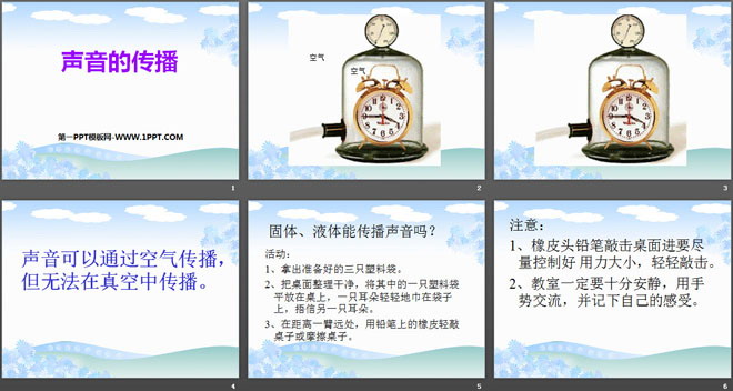关键词:声音的传播教学课件,各种各样的声音教学课件,人教版四年级下册科学PPT课件下载,四年级科学幻灯片课件下载,声音的传播PPT课件下载,各种各样的声音PPT课件下载,.PPT格式;