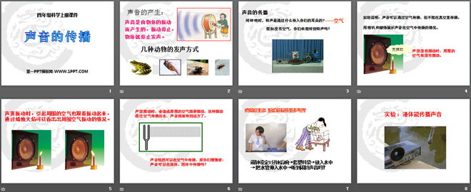关键词:各种各样的声音教学课件,声音的传播教学课件,人教版四年级下册科学PPT课件下载,四年级科学幻灯片课件下载,各种各样的声音PPT课件下载,声音的传播PPT课件下载,.PPT格式;
