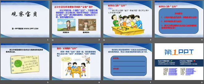 达尔文每发现一个新的“宝贝”,总要进行细致的观察。这让他发现了很多科学秘密。当我们对自己的“宝贝”进行细致观察时,也能像达尔文一样,获得有趣的发现。
