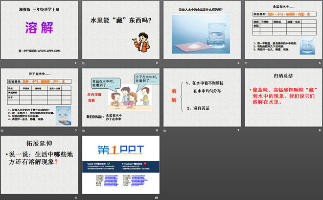 关键词:奇妙的水教学课件,溶解教学课件,湘教版三年级上册科学PPT课件下载,三年级科学幻灯片课件下载,奇妙的水PPT课件下载,溶解PPT课件下载,.PPT格式;