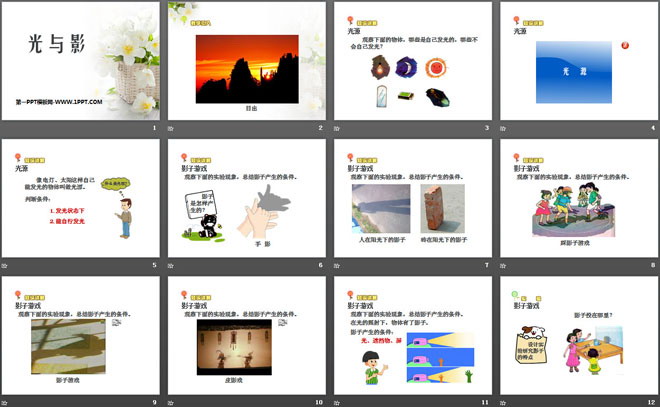 关键词:多彩的光教学课件,光与影教学课件,湘教版三年级下册科学PPT课件下载,三年级科学幻灯片课件下载,多彩的光PPT课件下载,光与影PPT课件下载,.PPT格式;