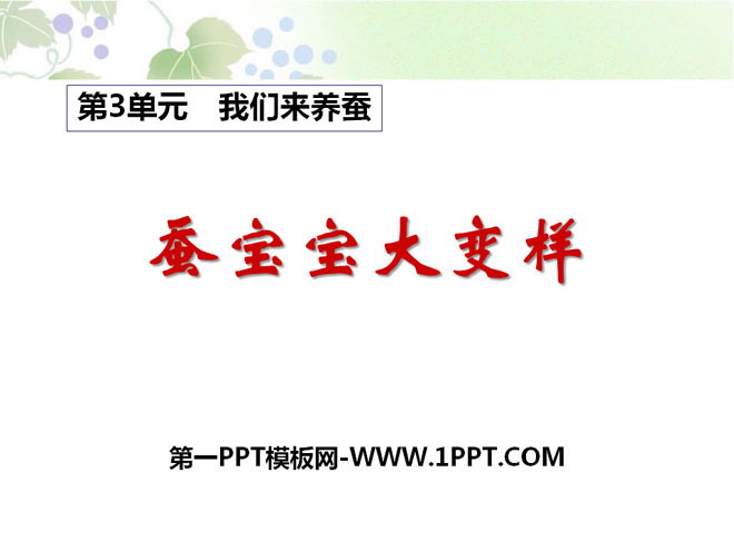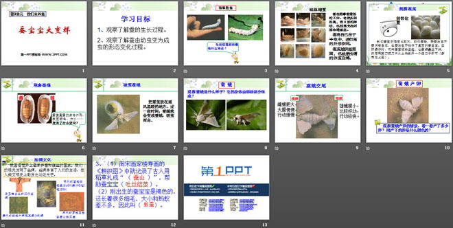 关键词:我们来养蚕教学课件,蚕宝宝大变样教学课件,湘教版三年级下册科学PPT课件下载,三年级科学幻灯片课件下载,我们来养蚕PPT课件下载,蚕宝宝大变样PPT课件下载,.PPT格式;