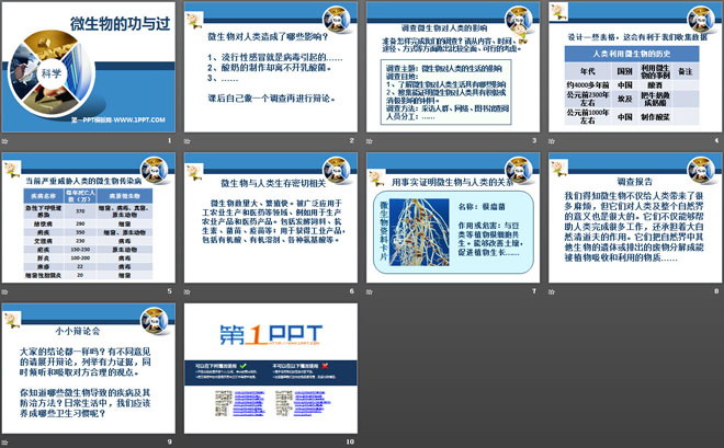 关键词:湘教版五年级下册科学PPT课件免费下载,微生物的功与过PPT下载,.PPT格式;