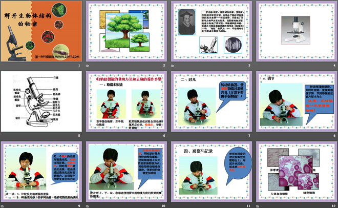 关键词:湘教版五年级下册科学PPT课件免费下载,解开生物体结构的秘密PPT下载,.PPT格式;