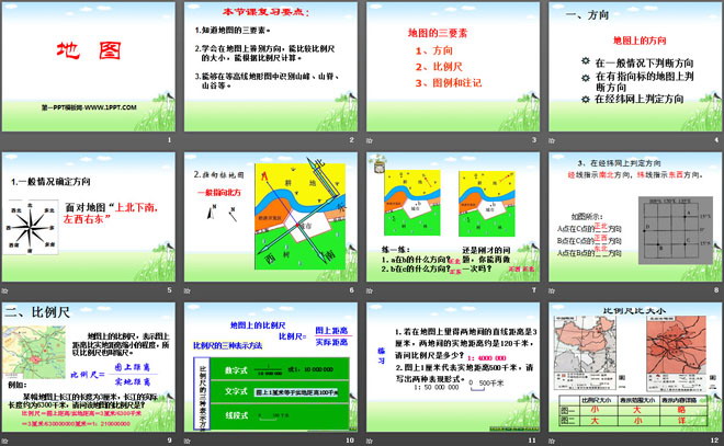 地图PPT,第二部分内容:方向、比例尺