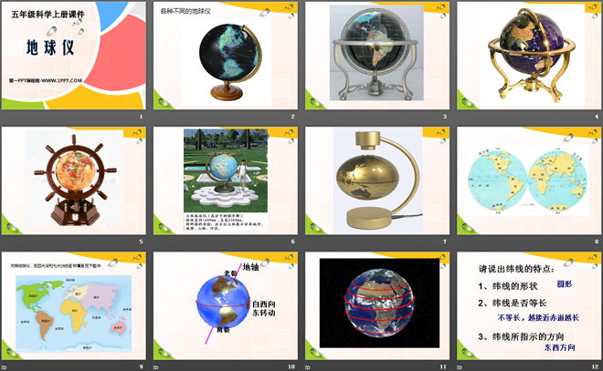 关键词:湘教版五年级上册科学PPT课件免费下载,地球仪PPT下载,.PPT格式;