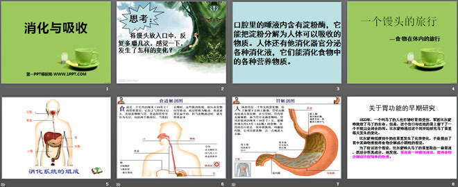 关键词:湘教版六年级上册科学PPT课件免费下载,消化与吸收PPT下载,.PPT格式;