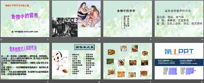 关键词:湘教版六年级上册科学PPT课件免费下载,食物中的营养PPT下载,.PPT格式;