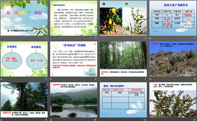 关键词:湘教版六年级上册科学PPT课件免费下载,从南橘北枳说起PPT下载,.PPT格式;