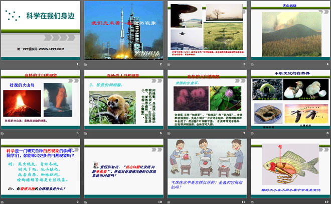 科学是一门研究各种自然现象的学问 。同学们,你能举出更多的自然现象吗?