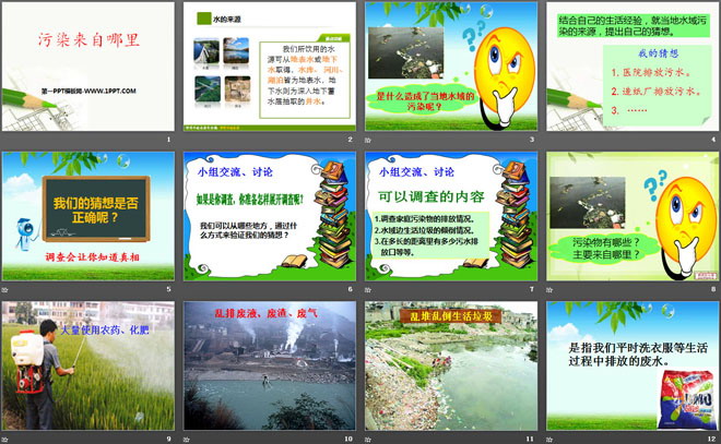 关键词:湘教版六年级下册科学PPT课件免费下载,污染来自哪里PPT下载,.PPT格式;