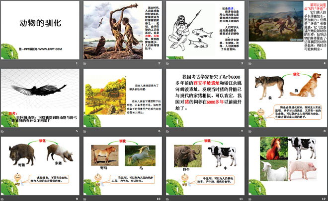 关键词:湘教版六年级下册科学PPT课件免费下载,动物的驯化PPT下载,.PPT格式;