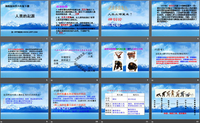 关键词:湘教版六年级下册科学PPT课件免费下载,人类的起源PPT下载,.PPT格式;