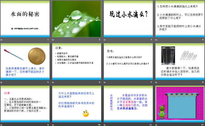 关键词:青岛版三年级上册科学PPT课件免费下载,水面的秘密PPT课件,.PPT格式;