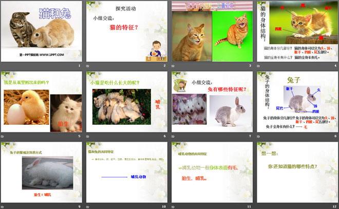 关键词:青岛版三年级下册科学PPT课件免费下载,猫和兔PPT下载,.PPT格式;
