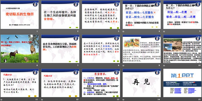 关键词:青岛版四年级下册科学PPT课件免费下载,密切联系的生物界PPT下载,.PPT格式;