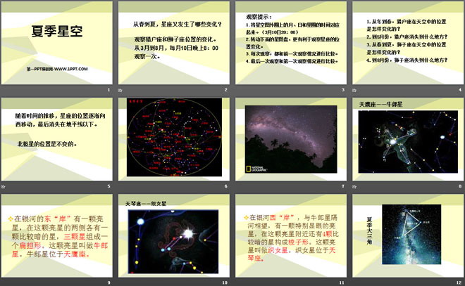关键词:青岛版四年级下册科学PPT课件免费下载,夏季星空PPT下载,.PPT格式;