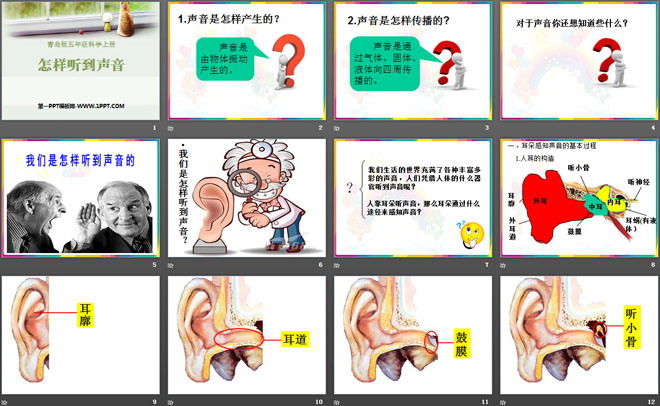关键词:青岛版五年级上册科学PPT课件免费下载,怎样听到声音PPT课件,.PPT格式;