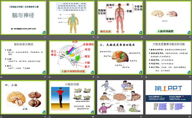 关键词:青岛版五年级上册科学PPT课件免费下载,脑与神经PPT下载,.PPT格式;