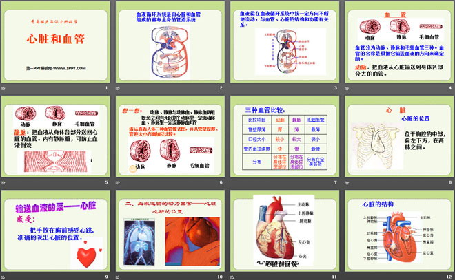 关键词:青岛版五年级上册科学PPT课件免费下载,心脏和血管PPT下载,.PPT格式;