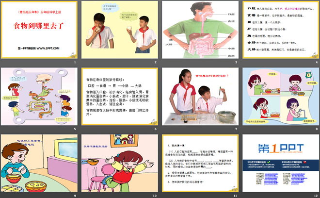 关键词:青岛版五年级上册科学PPT课件免费下载,食物到哪里去了PPT下载,.PPT格式;