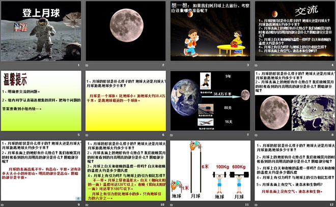 4、月球上的引力比地球小的多,只有地球引力的六分之一。