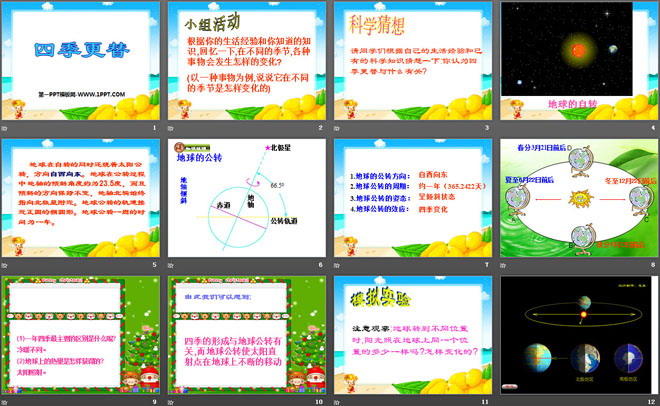 请同学们根据自己的生活经验和已有的科学知识猜想一下:你认为四季更替与什么有关?