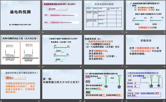 关键词:青岛版五年级下册科学PPT课件免费下载,通电的线圈PPT下载,.PPT格式;
