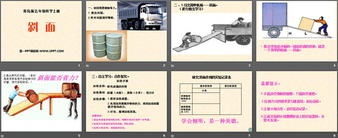 关键词:青岛版五年级上册科学PPT课件免费下载,斜面PPT下载,.PPT格式;